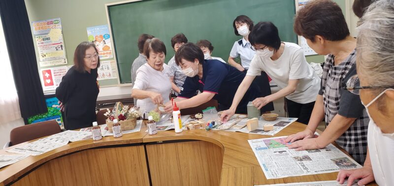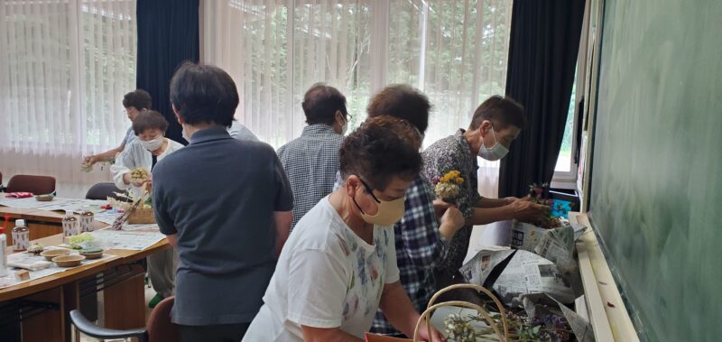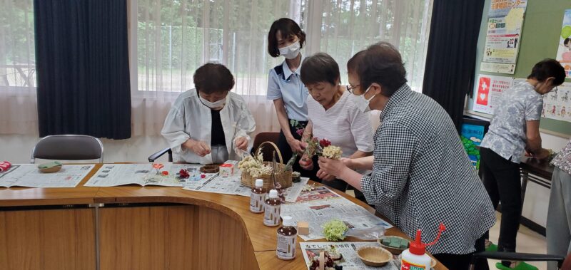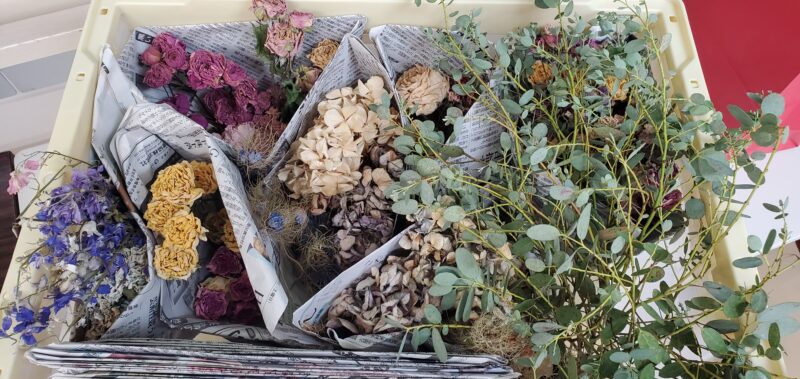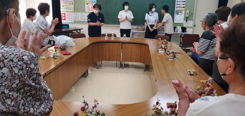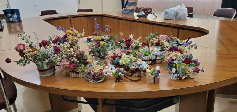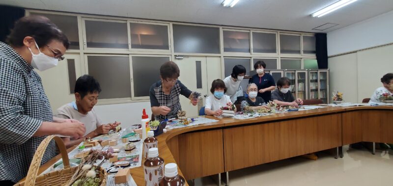 今日は、こぶしの里のみなさんの講師で「ドライフラワーを使ったフラワーアレンジメント」に挑戦します。