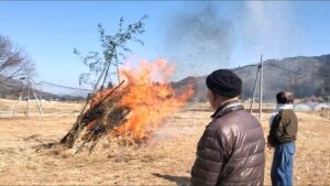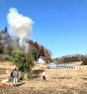 振興区活動 その他活動 冬の風物詩「とんど」 振興区活動 2026年1月19日2026年3月19日 小正月のころの風物詩といえば「とんど焼き」今年も、川鳥と田黒それぞれの地域で行われました。 川鳥春秋会のとんど 田黒支部のとんど 笹竹の櫓にしめ縄や正月飾り物をつけてお焚き上げし、新年にお迎えした歳神様を煙と共に空へとお見送りされました。そのあと餅などを焼き、用意されたぜんざいや汁物を集まった皆さんで食べられたようです。写真では分かりにくいですが、たくさんの方がおられ、冬の地域交流の場にもなっていると言えそうです。歳神様の力で穢れが払われ、無病息災・家内安全で過ごせる一年になりそうですね。